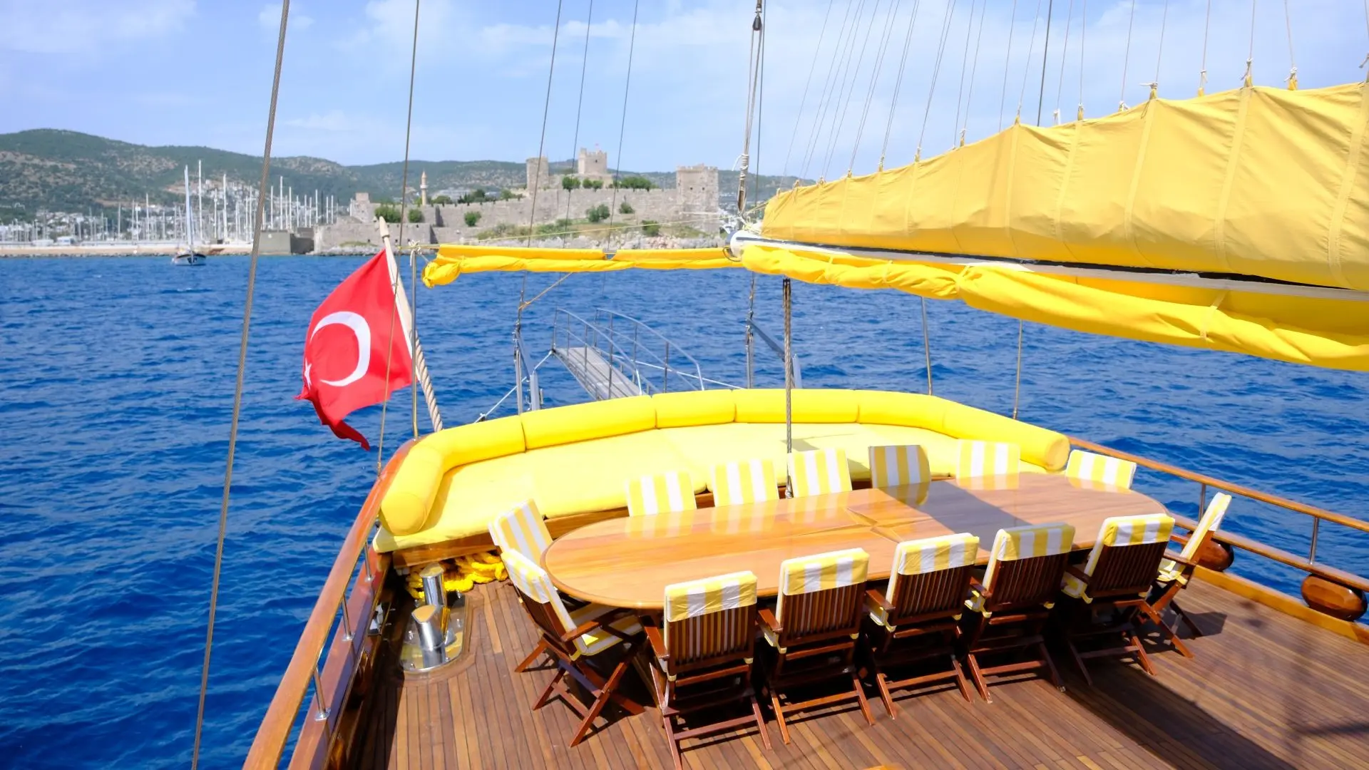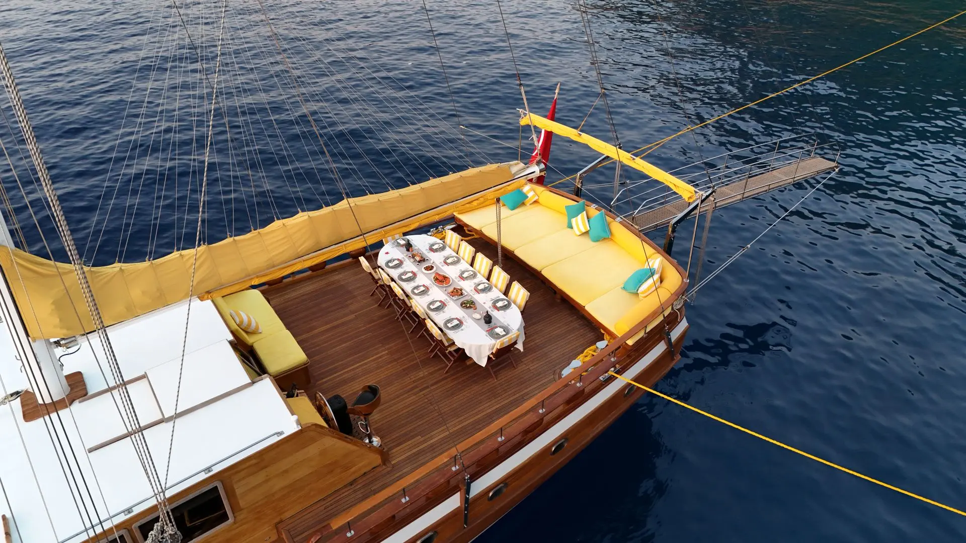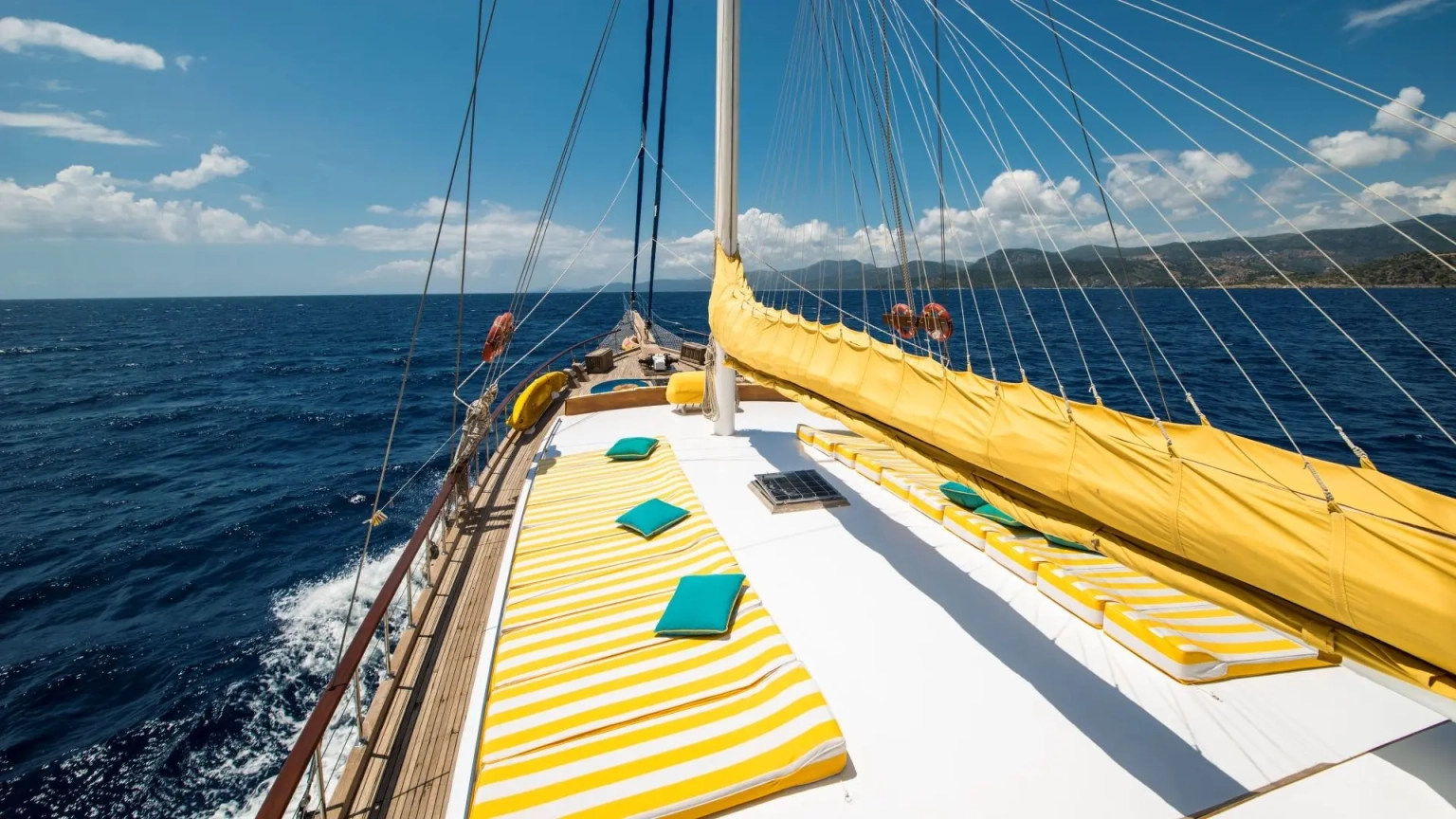 All of our boats are traditional gulet yachts, handcrafted in Southern Turkey. These two or three-masted sailing yachts are fully equipped with ensuite cabins, a professional kitchen, dining spaces, and deck mattresses for those who wish to sleep under the stars.