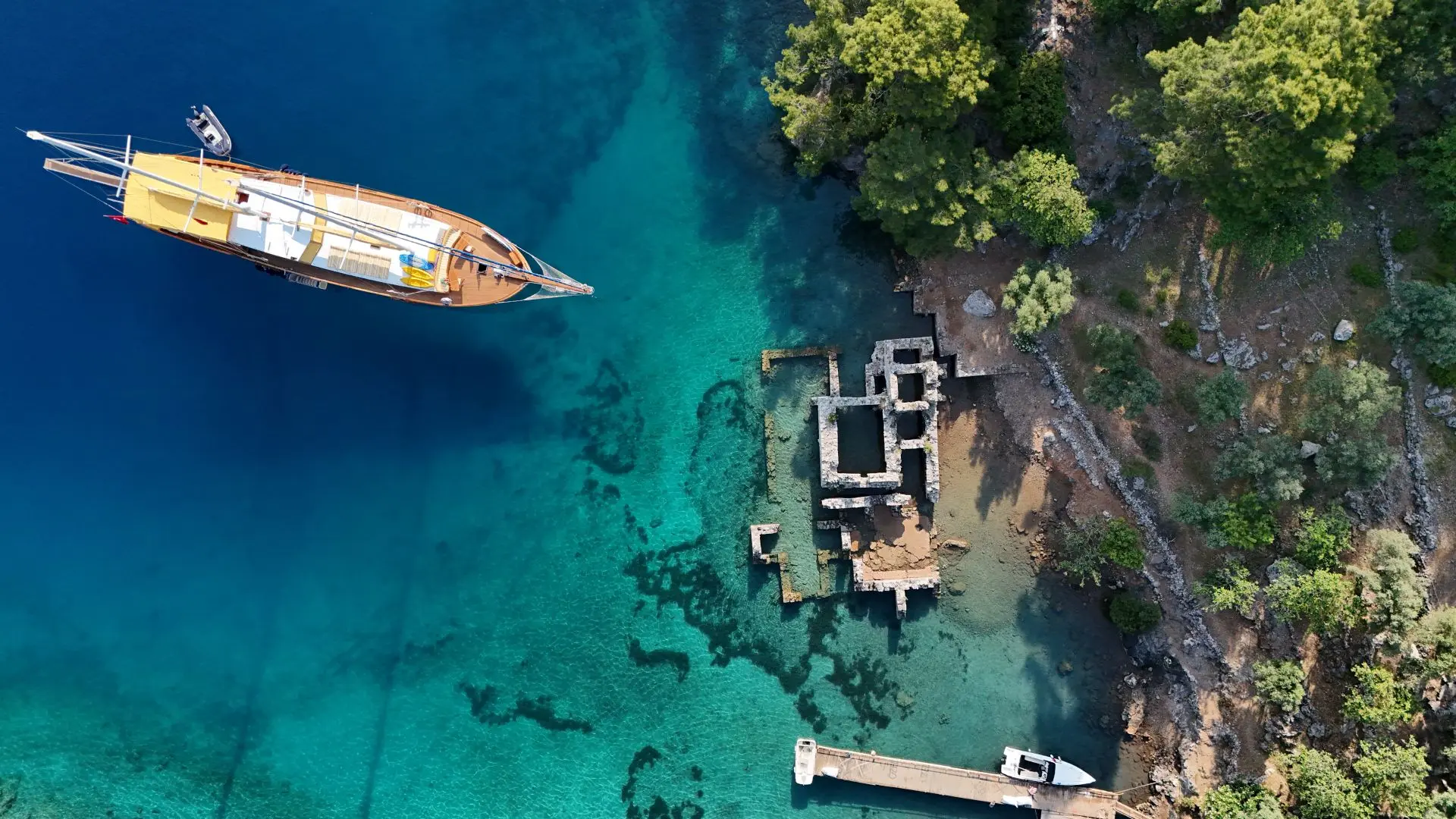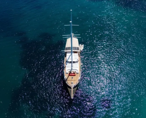 Guests can explore the breathtaking Aegean and Mediterranean coasts, including Fethiye and Bodrum, with flexible itineraries. The yacht offers excursions to lively resorts and traditional villages, authentic local cuisine and cultural experiences, ancient ruins, sightseeing spots, and shopping areas. Optional guided tours can be arranged, or guests can opt for self-exploration with the captain’s recommendations.